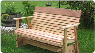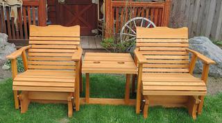 Looking for an alternative to a porch swing, please take a look at our cedar patio outdoor gliders. Kilmer's gliders require very little space, rock with a smooth motion, and can be easily moved. We offer a roomy 2’ cedar glider for one, a comfy 4’ glider, a comfortable 5’ glider, and a settee (which is two 2’ gliders that glide independently, with a fixed table in between).